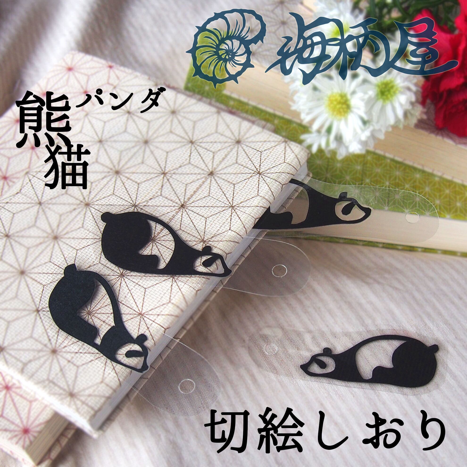 切絵手法でひとつひとつ手づくりされた一点モノの栞です。パンダのツートン比率はリアルとは異なります。